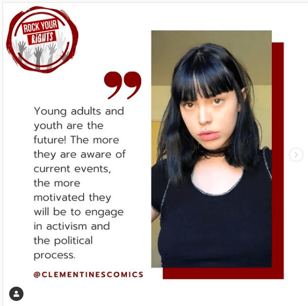 Be sure to share your work with us so we can amplify your voice and so that you can be an inspiration for other creative activists! You can submit your art, poetry, music, dance, etc. at www.rock-your-rights.org.